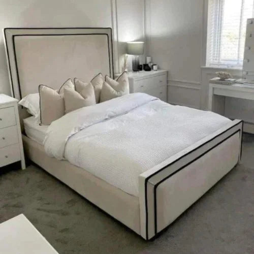 Regular price £289.00 GBPSale price £289.00 GBP Regular priceUnit price perSale Sold outHere we have the Luxurious Anne Linear Designer Bed, This bed has a 3 inch border with a gold strip surrounded around it, The bed comes...