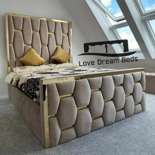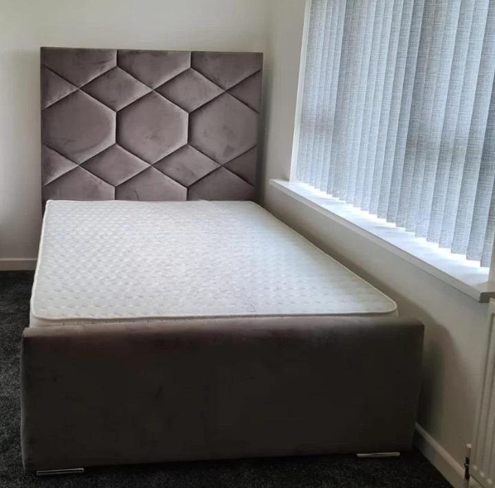 Regular price £599.00 GBPSale price £599.00 GBP Regular priceUnit price perSale Sold outVelvet Silver Cubed Upholstered Bed frame; Available in all colours and fabrics. Available in all sizes including Single 3ft, Small Double 4ft, Double 4’6ft, King 5ft and Super...